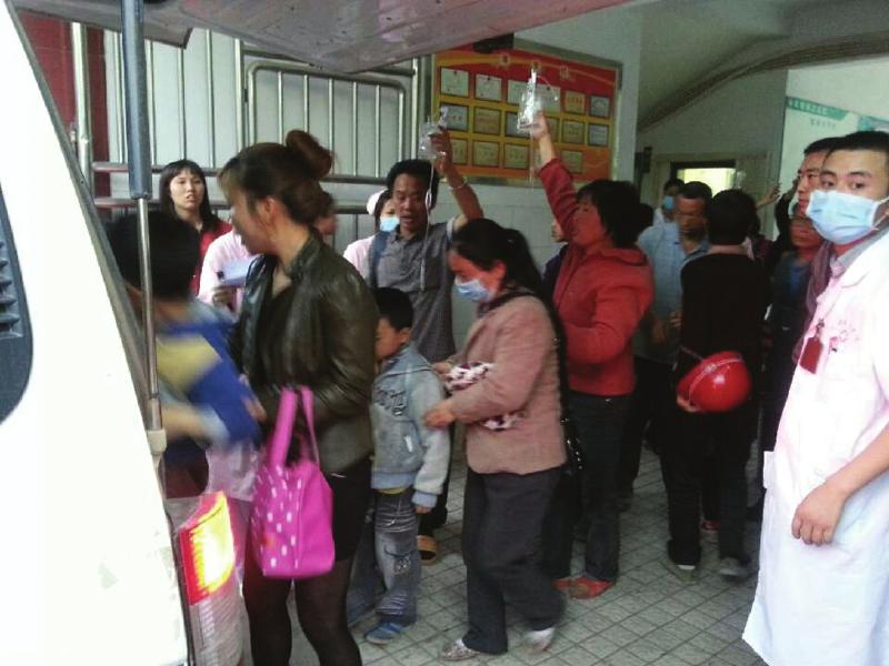 昨日下午5时许,华西都市报记者在迎接镇卫生院看到,学生和家长挤满了医院,绝大部分学生正在输液。据记者初步统计,人数达40余人。据迎接镇中心小学三年级学生小黎的父亲介绍,小黎中午在学校食堂吃了番茄炒蛋、土豆等菜后,在下午4点左右出现头晕、呕吐、腹泻、高烧症状,“他的一个同学高烧达40℃,可能是土豆引起的食物中毒,输液后已经安静睡下了。”