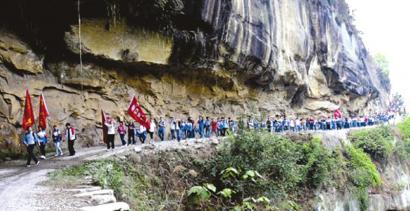 “我参加这样的活动觉得很兴奋,平时学习压力比较大,难得有这样的机会出来走走,虽然有点累,但是我觉得非常值得!”高二.1班学生官春梅走在队伍前列,满头大汗说。
