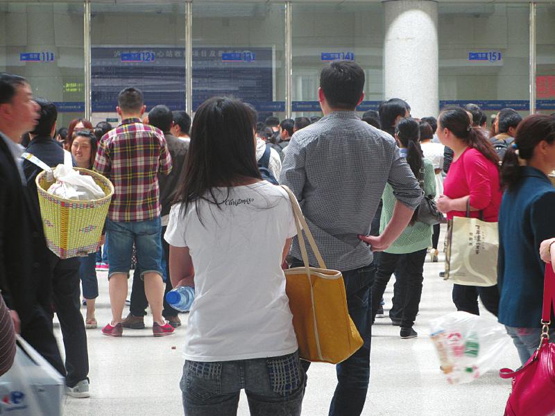 昨日中午12点20分左右,保卫稽查队的曹胜昔改变以往工作习惯,没有去查车,而是在候车厅多停留了一段时间。就在这时,一个留着长发的身影在2号检票口处晃过,“我一眼就认出了他。”随后,曹胜昔追了上去。