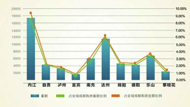 2012年,由华西都市报联合成都透明房产网、腾讯网等联合推出的《全川购房力调查报告》显示,四川二级城市购房者买走了成都一半左右房。