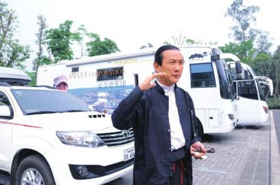 4月4日下午,四辆豪华房车停放在自贡恐龙博物馆停车场内,十分抢眼。房车的主人是入选福布斯排行榜泰国富豪第27位的泰国安美德(大众)有限公司总裁、安美德基金会主席、泰国著名作家邱威功。自贡是邱威功2013年亚洲自驾游的其中一站。富豪变身作家希望将经历分享