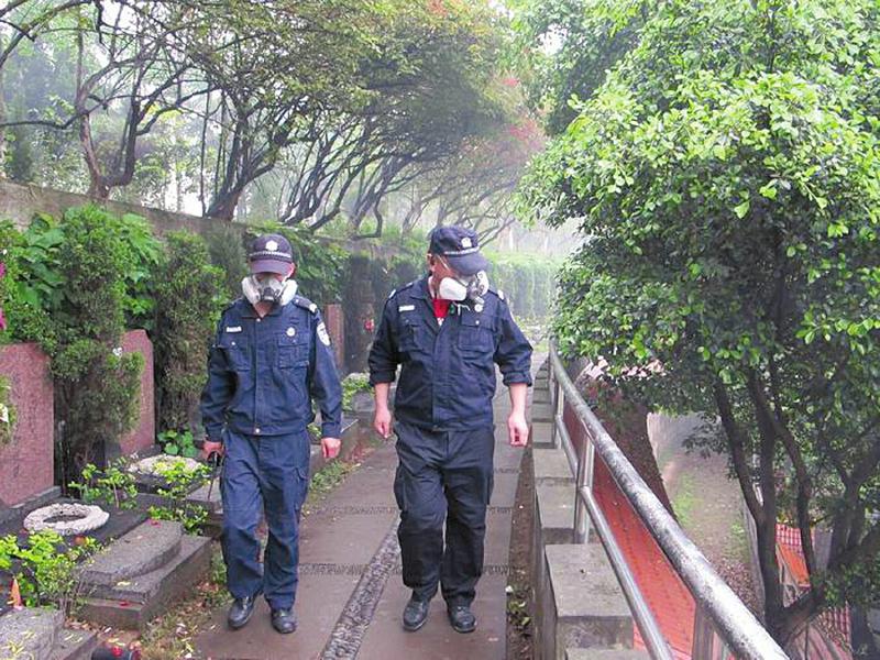 “每到清明,墓园就到处弥漫着烧冥币的烟雾,空气中的PM 2.5也随之增多。”据墓园相关负责人介绍,今年清明节,墓园精心策划与部署,为工作人员配备了防毒面具,在防止“毒气”伤害身体的同时,带给市民一种视觉冲击,让祭扫市民意识到丧葬陋习的危害。还与市环保局达成共识,引进环境监测车,对墓园的环境指数进行实地监测,及时向市民公布空气的污染程度。