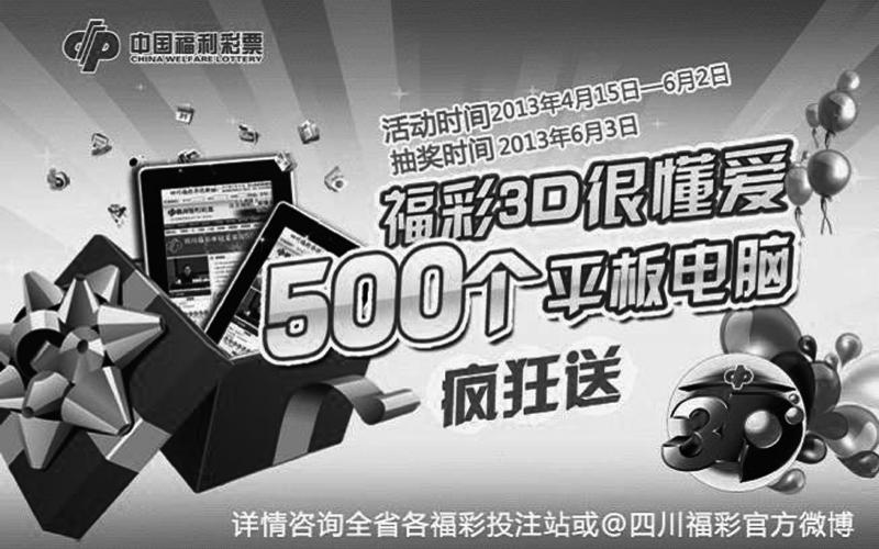 据省福彩中心相关人士介绍,本次活动具有几个特点。一是促销力度大。省福彩中心将送出总计500台平板电脑给活动中奖彩民。二是参与门槛低。在活动期内,凡在省内任一福彩投注站购买3D彩票、且单张投注金额在10元以上(含10元)的彩民均可参与活动。三是参与方式简单。彩民编辑话题“#福彩3D很懂爱,500个平板电脑疯狂送#和所购3D彩票上的站点号+流水号+日期@四川福彩官方微博”,发送至1069 009 009(移动用户)、1066 8888 66(联通用户、电信用户)即可,按市话收费。