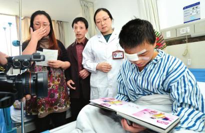 昨天下午3点,重医附一院眼科病房,感动的哭声响成一片。专程从广安市邻水县赶来的雨晴的爸爸胡洪波和妈妈骆娟,带着鲜花提着水果,到病房探望两名受女儿捐献眼角膜的两学子。