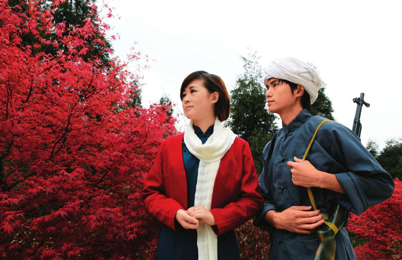 装扮成游击队员和“江姐”的准新人,在华蓥山区拍摄“红色婚纱照”。