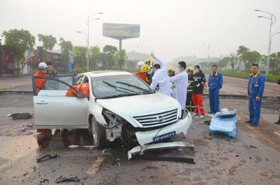 泸州一轿车冲进路坑致一死一伤