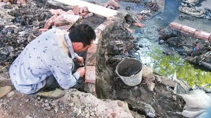 现场臭水溢出行人捂鼻而过