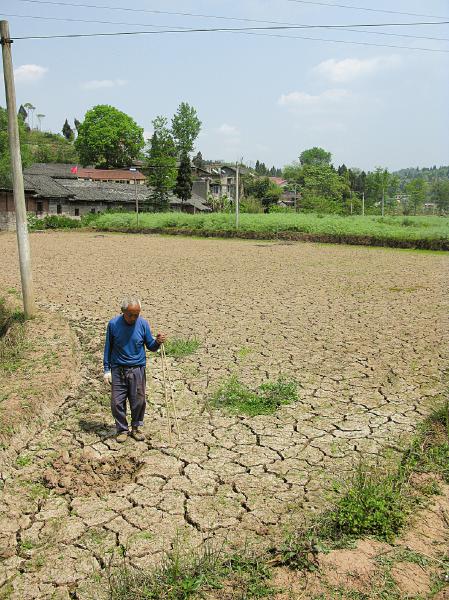 昨日上午11时过,在内江杨家镇石盘村山路上,记者见到了居民何宣元。他今年70岁了,刚刚在山上种下几十颗玉米。“之前没水一直不敢种,赶着清明下雨种了点,今天又种了点,也不晓得活不活得到。”