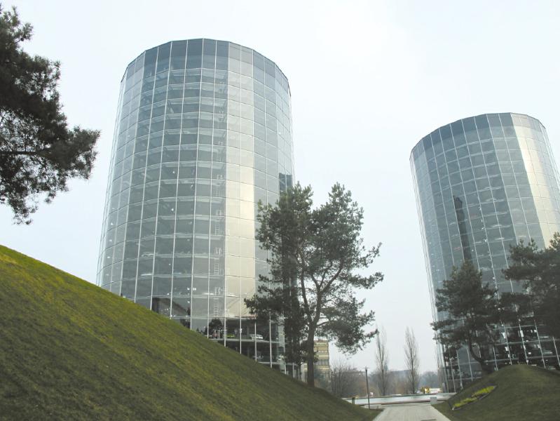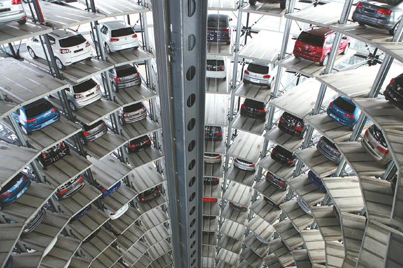 “我们要让每位顾客提新车时都获得做国王的感受。”3月7日,来自德国西部小镇——佛灵的Kathrin姐妹显得异常兴奋。她们站在200英尺(约合60米)的汽车存放塔的顶楼,透过玻璃窗,目不转睛地盯着一辆辆汽车通过传动皮带运来,她们知道,其中一辆车就是她们的。汽车存放塔是德国大众汽车集团位于沃尔夫斯堡的大众汽车城一个标志性建筑。它由两个圆柱体组成,名为“Car Tower”,实际上是用来存放汽车的立体车库。整个立体车库共有23层,可存放800辆车。在电影《碟中谍》系列《幽灵协议》中,一个巨型车库吸引了影迷们的注意,其实,这个巨型车库其灵感来源就是这个汽车存放塔。它是世界最大的汽车交付中心,大众在德国沃尔夫斯堡工厂制造的汽车通过传送带进入存放塔的地下室,借助于一条环绕中梁旋转的机械臂,新车以每秒2米的速度运到指定位置,随后在这里等待它们的新主人!建筑师把这两座透明的汽车塔楼比喻为汽车城公园里的“撞击心灵的玻璃发动机”。导游告诉华西都市报记者,在这里存放的汽车一般都不会超过48个小时,每天都有来自德国,甚至欧洲各地的车主来到这里把车提走。双塔与椭圆形的顾客中心相连接,每隔40秒就有一辆车被取走。汽车城的发言人曾经说:“提取新车是一个具有特殊意义的事件,我们要让每位顾客都获得做国王的感受。”