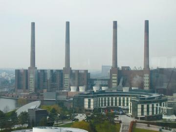 德国人坚韧不拔、严谨认真的做事精神在大众人的身上表现得淋漓尽致。和大众汽车主题公园一河之隔的是大众汽车的总部生产车间。而这里的标志性建筑就是那四根著名的红砖烟囱,下面则是红砖墙的厂房。这些烟囱和厂房和大众汽车一样,已经经历了风风雨雨75年,而今仍然屹立不倒,焕发着蓬勃生机。