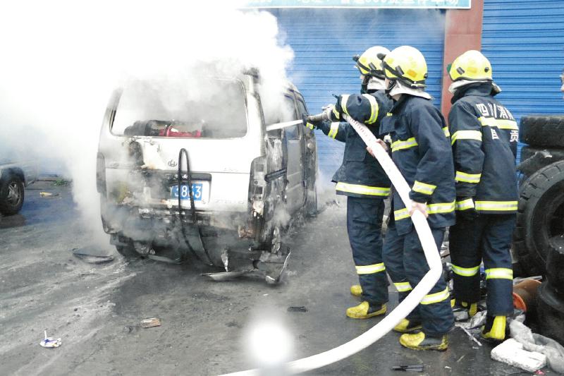 昨日早晨6时40分许,在省道305线自贡段南北停车场内,一辆熄火半小时的面包车突然自燃,当地消防迅速出警将大火扑灭。自燃未造成人员伤亡。据了解,面包车自燃可能与水花溅入车内,造成车内线路短路所致。