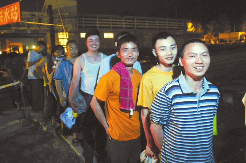 从4月22日开始,已经保障了7000人左右在此洗澡,每一辆淋浴车可供16人同时洗澡,现在每天有2000人左右在此冲凉。