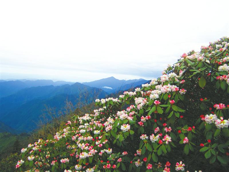 每年春季,西岭雪山的杜鹃花从低山区向高山区次第开放,花期长达四五个月之久。一束少则数朵,多则数十朵。一朵朵依偎着,一束束簇拥着,红的似火,白的如雪,更奇的是一花数色,鲜艳绝伦。与春草说爱