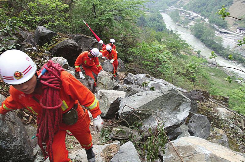 确定没有生命迹象之后,救援队随即又徒步向宝兴县开进,当日下午6时许,救援队抵达宝兴县。兵分三路,对灾区展开地毯式搜寻。