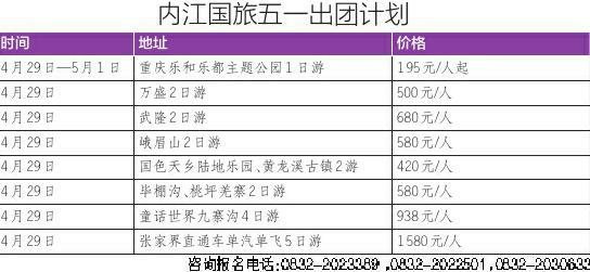 内江国旅五一出团计划