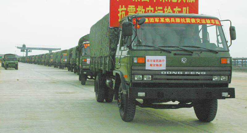 截至4月26日,连续7个昼夜的奋战,8.72万余顶救灾帐篷、21.72万余床棉被、1万余张折叠床、100余万平方米彩条布、10万余支蜡烛、700个简易厕所以及数千吨方便面、矿泉水等食品和大量雨具、手电筒、应急灯、发电机等救灾物资全部运送到了灾区,有力地保障了灾区群众基本生活。