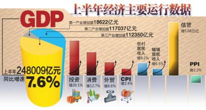一季度7.7%,二季度7.5%。今年上半年,我国经济延续了自2011年来的放缓态势。