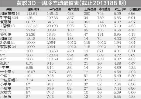 小质单:截至第2013188期,已有连续52期未出,理论循环周期为8期,价值指数6.50,历史最长遗漏55期。