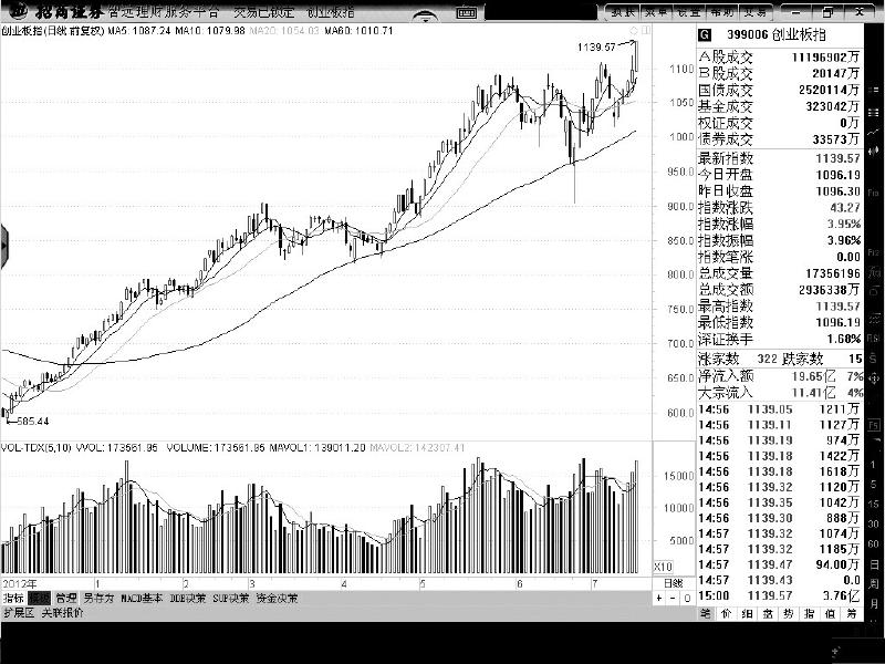 昨日,创业板指数大涨3.95%,再创反弹新高,达到了1139.57点,距离历史最高点只有100点。今年以来,创业板指数的涨幅达到了59.63%。