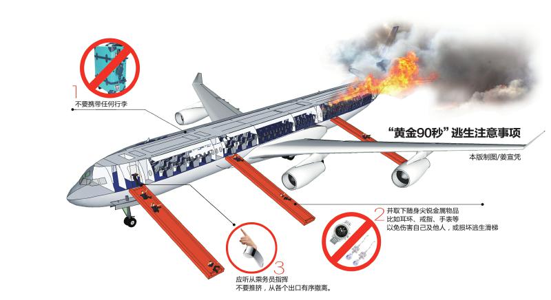 根据历年飞行事故数据显示,发生事故后,飞机通常会在着陆90秒钟之后才发生爆炸,因此,这段逃生的关键时期也被称为“黄金90秒”。