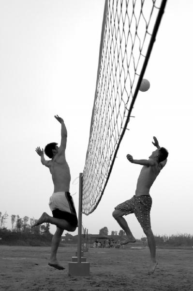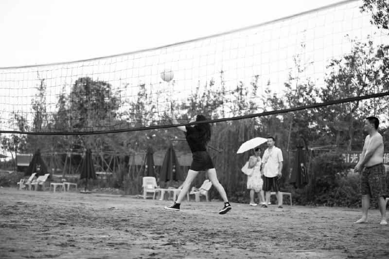 沙滩排球——这又是一项充满着激情和快乐的运动方式,或约上三五好友,或全家齐上阵,在细软的沙滩上,跳跃着接球、击球;若是玩得兴起,不妨也来一次精彩的扣杀,博得掌声连连吧!