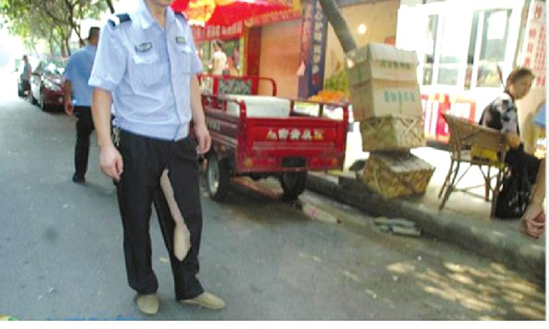 执法者:四次劝导无效遭撕烂裤子