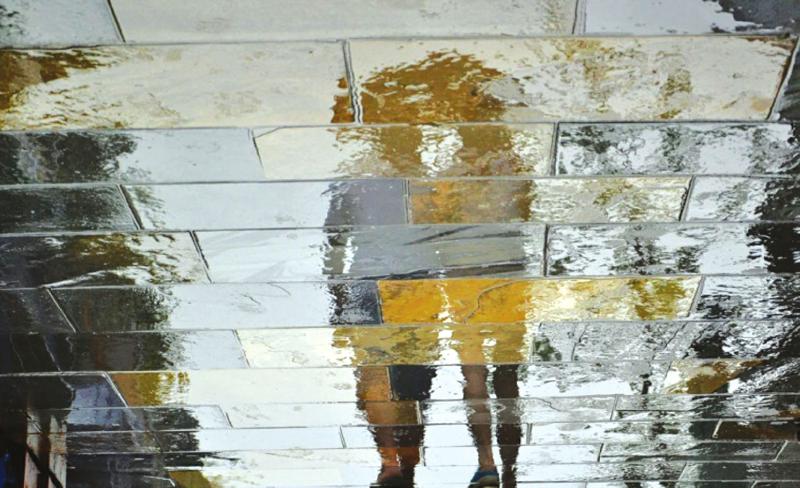 3、《幸福就是毛毛雨》:雨中,一对情侣的倒影映射在湿漉漉的地面上。 拍客:下2两硬点的面哈