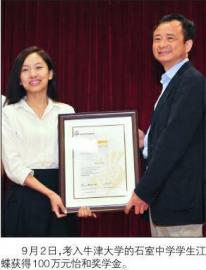 “牛津学姐”获奖 勉励学弟学妹“要有梦想”