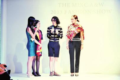 “珐琅饰品在欧洲非常流行,中国人佩带会有一种东方气质与西方美的结合感。”设计师赵卉洲在T台下的观众区里,发现了一位穿黑白连身裙的女孩。她现场为女孩挑选了珐琅吊坠耳环和手镯,顿如点睛之笔,让人眼前一亮。而设计师成昊,则不失时机地推荐了自己身穿的自主设计品牌,并为市民现场示范起丝巾的魅力。“一条丝巾可以有好几种穿戴法,配合不同场合的需要,这与我自己的设计风格‘一衣多穿’不谋而合。”