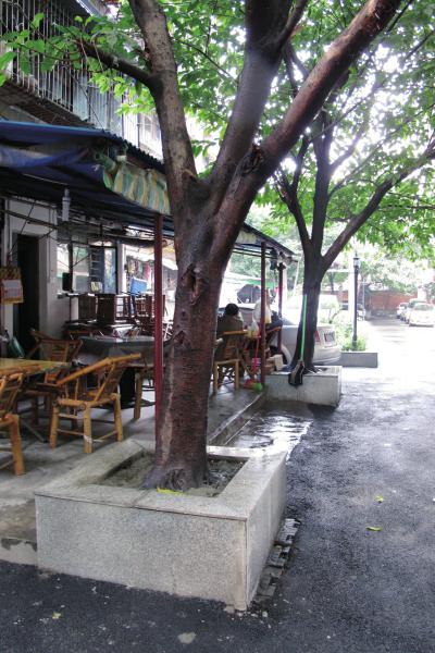小区中央,七八个老人、孩子正聚在大树下活动。李大爷指着围在大树下的全新树裙说道,以前没有给大树修树裙的时候,大树的根从地下翘了出来,把路面撑得凹凸不平,根本没有活动的地方。小区居民刘阿姨也凑了过来:“现在花坛被瓷砖规范地围了起来,天气好的时候,大家还能在树下坐坐,比以前杂草丛生好多了。”