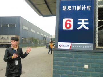 昨日,记者走进百胜物流的物流配送基地,首先看到的是醒目的双11倒计时牌,并且随处可见“决战双11”的横幅。仓库里已经为双11扩充了两条分拣线,并且还在加紧扩建中。