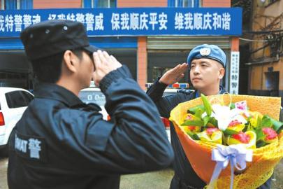 华西城市读本讯(记者 张肇婷 摄影报道)根据公安部统一安排,四川省维和警队15名警员即将赴南苏丹执行为期一年的联合国维和任务。昨日,南充市顺庆公安以隆重的仪式欢送南充公安史上维和警察第一人杨小易出征。