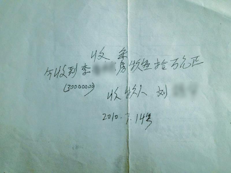 “前两张是我写的,30万元那一张肯定不是我写的。”张蓉华很纳闷,为何自己写的3万元的收条会变成30万元。“既然协助她(赵艳丽)签订了合同,就只等待她的购房款到位,这件事就算画上句号了,却万万没想到对方居然擅自修改收条。”张蓉华激动地说。