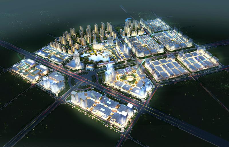 德阳西部国际商贸城是第十届西博会签约项目,省、市大型重点项目,“中国市场‘百城万亿’增长与发展计划”首批百亿重点培育项目,中国商业联合会的‘中国品牌市场实验示范基地’,同时又是省级高新技术开发区龙头项目。项目占地2700亩,计划投资总额125亿元人民币,建筑总面积将达430万平米,以“东有义乌,西有德阳;直供德阳,分销天下”为开发理念。建成后,将成为“辐射西部12省市,面向世界”,集“多元化专业市场、高端城市配套、高档住宅群于一体”的“国际商贸之都”,预计年交易额将突破200亿元人民币以上。项目一期150万㎡专业市场集群计划2014年9月全面正式开业,现已开工面积近100万平方米,主体封顶30万平方米,到2013年底主体封顶将达到50万平方米。