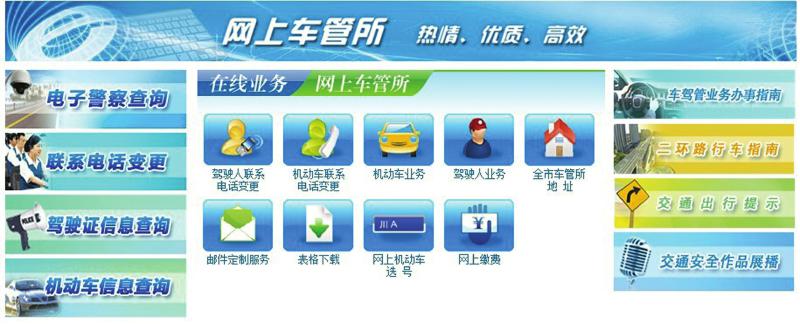 据成都市交管局民警介绍,成都交警门户网站是成都交警部门首个综合服务性网站,相比以往的成都市车管所官方网站,多了不少服务板块和搜索引擎。其中,最实际的功能就是市民可以免费绑定手机号,获得多达38项的车驾管短信提醒。