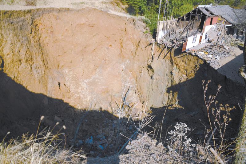12日凌晨00:40许,广元市朝天区平溪乡毛坝村三组发生地陷,地陷造成的“天坑”南北长60余米,宽40余米。村民王加顺5间旧住房全部沉陷、新住房严重受损,相邻的村民王加福家1间旧房被拉塌。所幸,未造成人员伤亡。