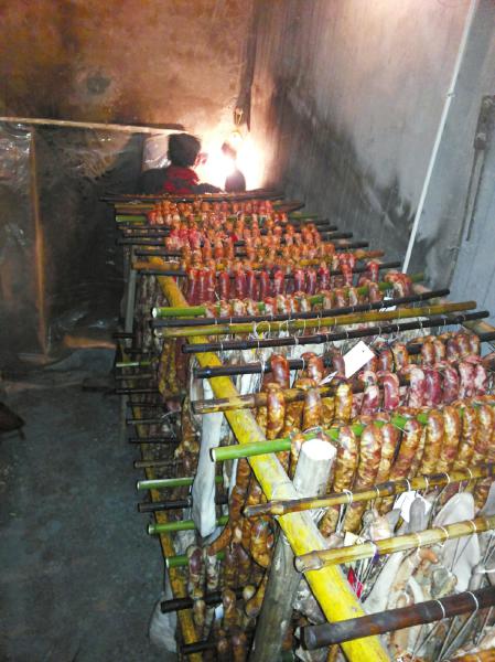正在熏肉的徐老太指着已经熏好的香肠对记者说,她到南充居住十多年,每年都要熏腊肉、香肠。今年做腊肉香肠她家一共花了两千多块钱,除了住在南充的老两口和儿女吃,还要寄给远在沿海打工的亲人。“烟熏腊肉吃了好多年了,没熏总感觉少了些味道。”不过徐老太也说,家里的年轻人已经不太愿意吃烟熏腊肉了。