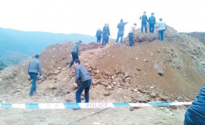 13日夜间19时,四川昭化古城游客中心左侧面一处在建酒店工地上,数辆大型挖掘机正紧张施工中。一辆挖掘机掀起泥土时,发现了几块已残破的青砖从土堆上滚下,建筑队停止施工。