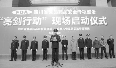 昨日,2014年四川省食品药品安全专项整治“亮剑行动”在成都启动。在启动仪式上,随着省政府领导一声令下,改革初成的食品药品监管执法队伍整装出发,将对食品领域的6大类违法行为、药品领域的8大违法行为展开专项整治。