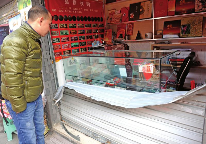 华西都市报讯(记者 许冬琳摄影刘陈平)撬锁不成,就用电锯锯开卷帘门行窃。昨天凌晨1点多,成都宋仙桥古玩城内的一家店铺被盗,“价值几十块的纪念币没动,偷走的都是值钱货。”据此失主朱女士分析,小偷应该是个懂行的。