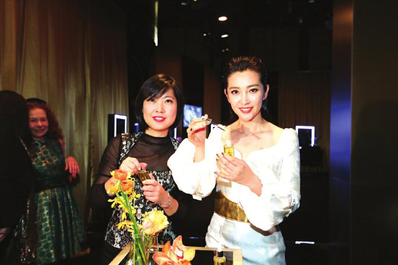 活动最后,7位嘉宾一起倒数,金色的幕布缓缓落下,全新金致臻颜奢养精华油在金色光芒的照耀下,进入众人视野,缓缓流动的精油在蒸馏瓶中流淌,芳香四溢,犹如孕育着一种新生的力量,让现场来宾跃跃欲试。嘉宾们纷纷在现场试用这两款精油产品。而李冰冰也在鲍总的陪伴下进入产品体验区,由BA用面部精油产品在她的手部体验,全套的精油产品以及BA专业细致的按摩手法,让冰冰的手部瞬间莹润光彩,犹如在美容院做完SPA 一般,她也表示回家一定要坚持使用这套产品,期待它令人惊喜的功效。