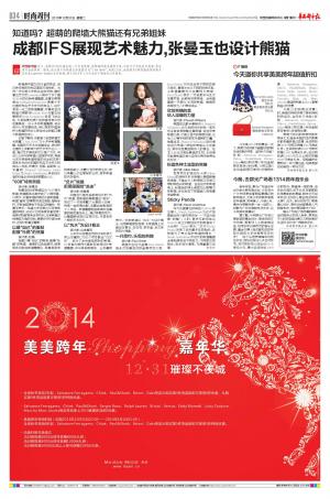 记者了解到,成都首个巨型熊猫艺术装置“I Am Here”及十多件熊猫雕塑,将国际级艺术与慈善结合,透过联合国际上有影响力的艺术家及名人一起,通过艺术展览和文化推广方式,号召公众参与到熊猫公益保护中来,唤起大家对濒危熊猫保育的关注和支持!首批参与设计的国际知名艺术家及时尚名人包括:张曼玉、杜鹃、岳敏君、山本耀司、Pharrell Williams、Alber Elbaz及Sarah Andelman,其他设计者的作品也将会陆续披露给公众。