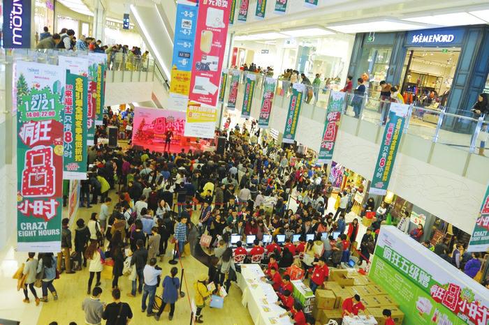 近日,成都来福士广场购物中心疯狂8小时再掀购物狂潮。12月21日活动当天人流量超过10万,营业额更是超过了1600万!自去年9月底开业至今,短短1年时间,成都来福士广场购物中心日均客流超过3万,每个周末都人头攒动,用餐时间家家餐饮排队,俨然已经成为城中时尚潮人、街拍达人和吃货们的聚集地。
