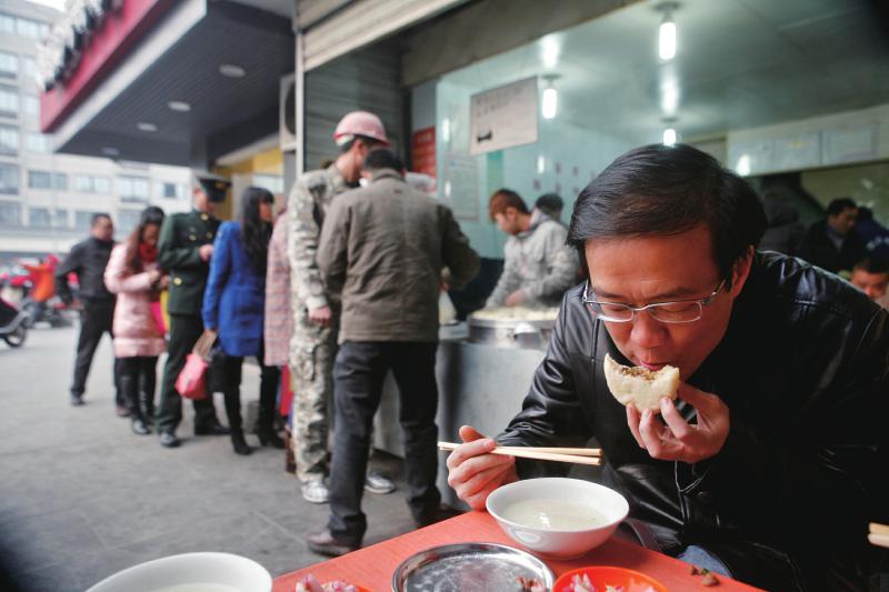 名声在外的十二桥包子铺也创造着每天有人排队的纪录。早上七点到九点,排队的人几乎不会断。老板说:“我们每天要卖差不多七十笼大包,每一笼大概35个,卖到早上十点差不多馅儿料就没了,中午就改卖面条。”
