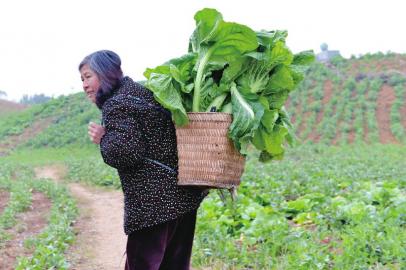 29日上午,李大爷和老伴还将刚从地里收获的新鲜青菜背到附近一家农贸市场变卖。