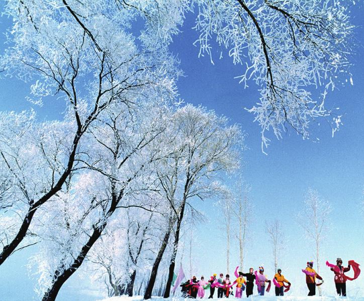 隆冬时节,当北国大地万木萧条的时候,走进东北的吉林市,你会看到一道神奇而美丽的风景。沿着松花江的堤岸望去,松柳凝霜挂雪,戴玉披银,如朵朵白银,排排雪浪,十分壮观。