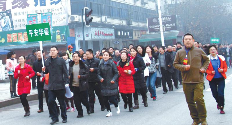 华西城市读本讯(游青杨天军记者王超胡旭阳摄影报道)昨日上午9点30分,广安华蓥市万余市民沿着十里长街小跑,以一种特殊的方式告别2013年,迎接2014年的到来。