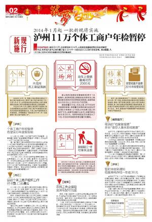 2014年1月起 一批新规将实施 泸州11万个体工商户年检暂停