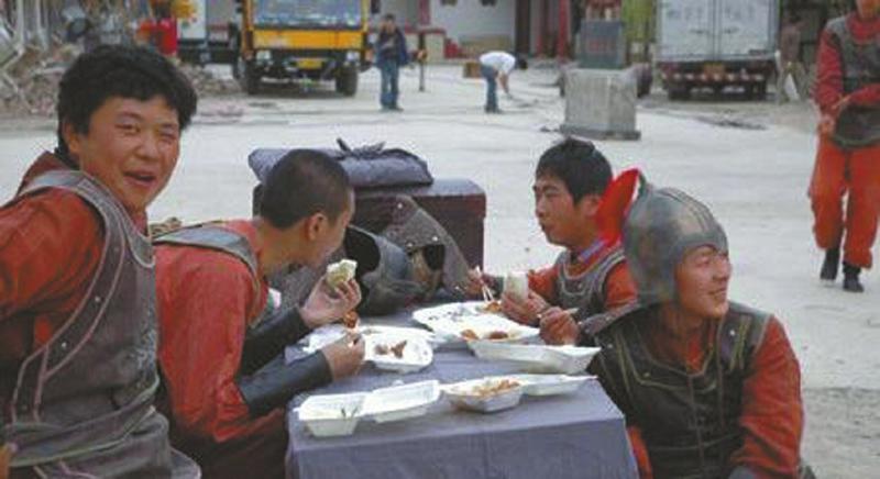 在怀柔影视基地附近,周围的农村院落成了群众演员的栖身之地。一名群演爆料入住大院时,需缴纳包括食宿费、管理费、拍摄基地门票费等共计2700多元。虽然说的是一日管三餐,但每天都是固定不变的辣椒酱和面片炒白菜,而且只有中午一顿。