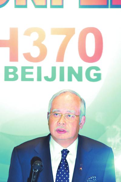 3月15日,马来西亚总理纳吉布在记者会上介绍马航失联客机最新情况。新华社发